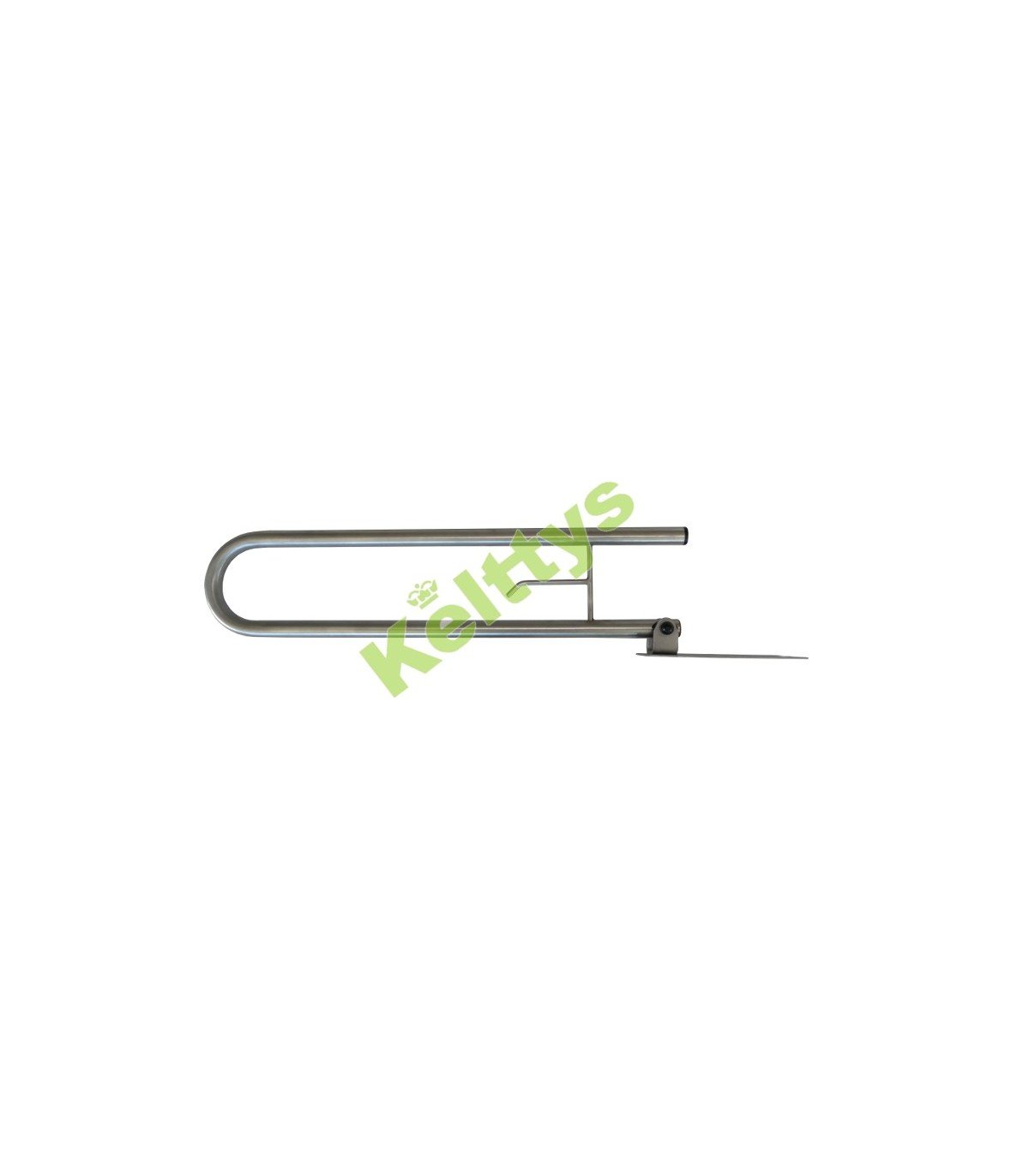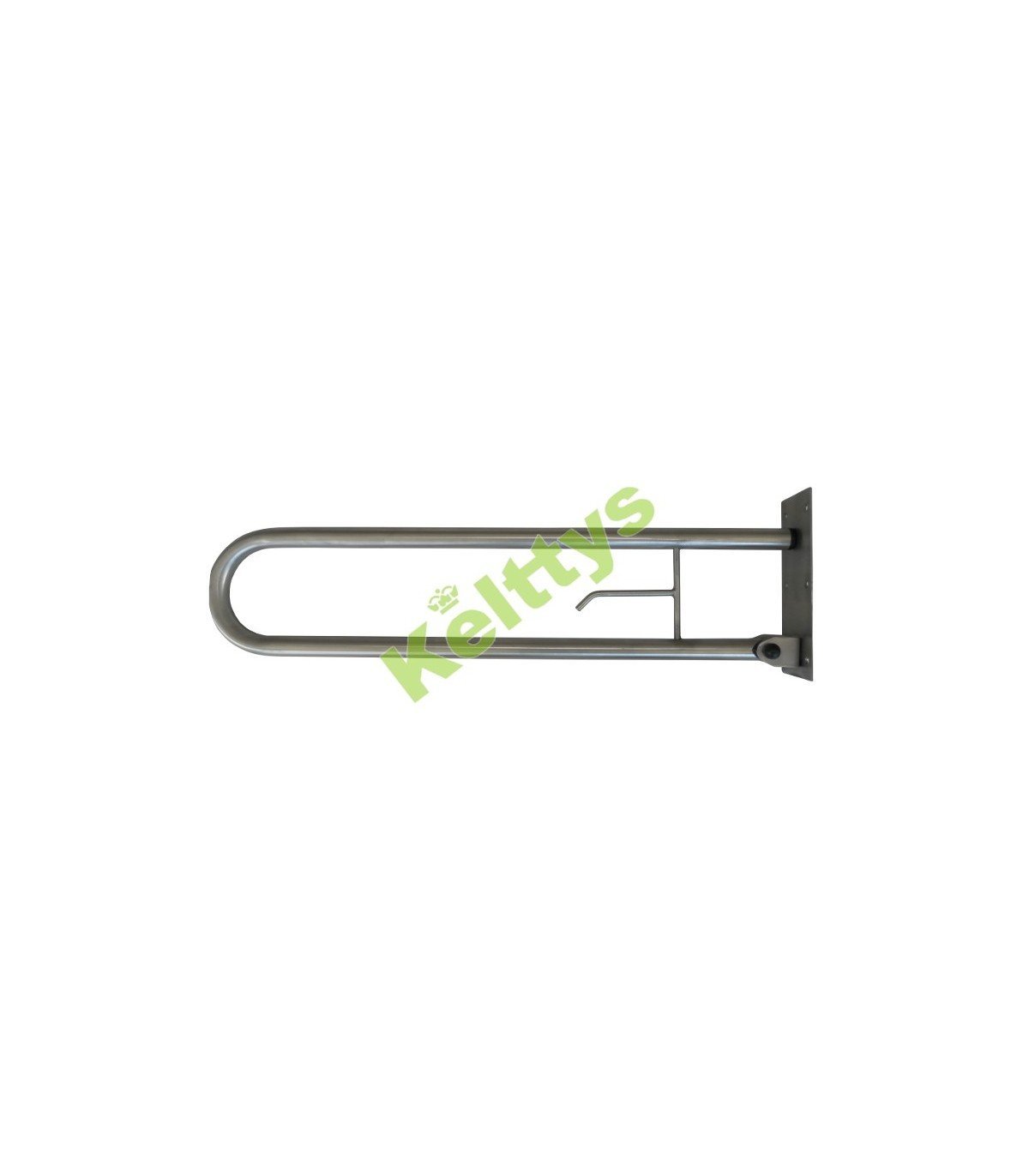 Barra de apoyo abatible fabricada en acero con acabado satinado, se fija en la pared al lado del inodoro para proporcionar apoyo. Cuando esta fuera de uso se puede inclinar verticalmente.