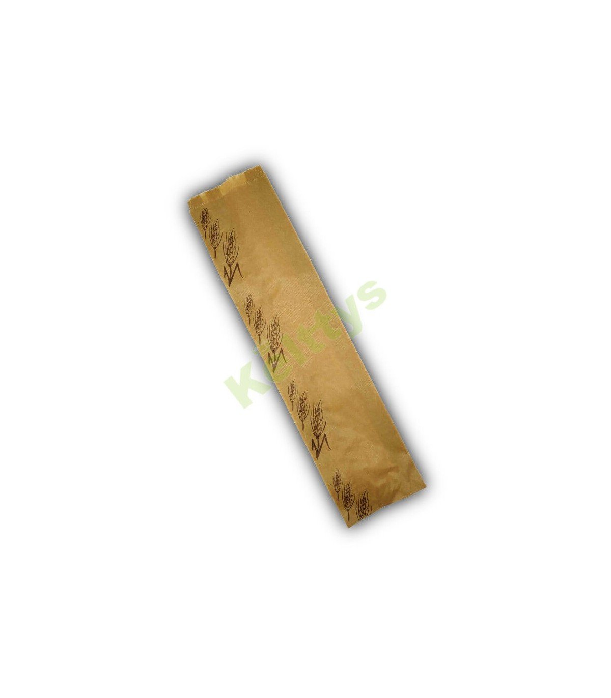 Bolsa de papel marrón kraft especialmente pensada para transportar pan o bolleria. Resistente y 100% ecológica. Cada caja contiene 1000 bolsas.