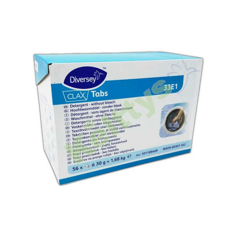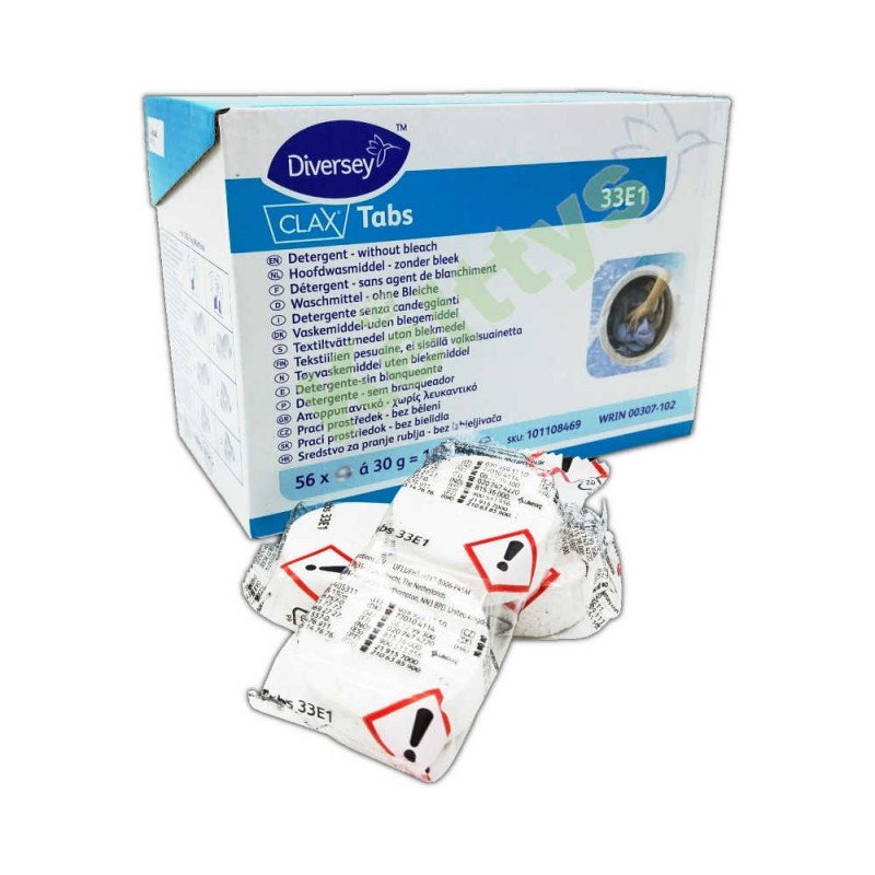 Clax Tabs 33B1 es un detergente completo para lavado de ropa en pastillas especialmente formulado para usar el lavanderías pequeñas. El producto ha sido desarrollado para dosificación manual y puede utilizarse en todo tipo de durezas del agua. Clax Tabs es adecuado para el lavado de todo tipo de prendas de color excepto prendas delicadas o lana.