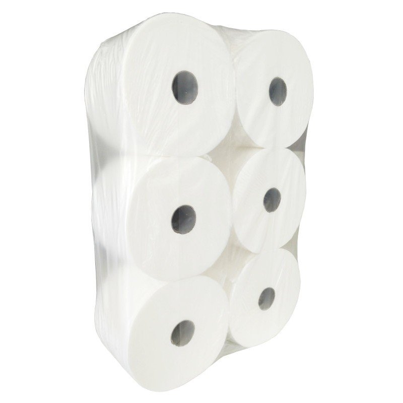 Papel higiénico industrial extra W.C. para sistemas de dispensación central (6 Unidades). Rollos de 720 gramos y 800 servicios. Solución práctica y eficiente para entornos de alto tráfico, como baños públicos, oficinas y fábricas.